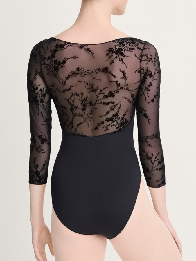 Eleganckie body baletowe marki Intermezzo z długim rękawem i subtelną, koronkową siateczką wzbogaconą o dekoracyjny, kwiatowy wzór. Model Gina złapie za serce romantyczki, tancerki flamenco i tanga argentyńskiego.