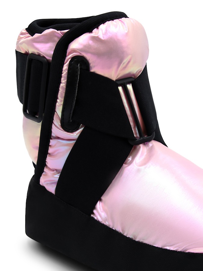Metaliczny, opalizujący róż otula stopy blaskiem, tworząc połączenie lekkości i komfortu. Idealne, gdy chcesz rozgrzać się efektywnie, ale nadal wyglądać stylowo.