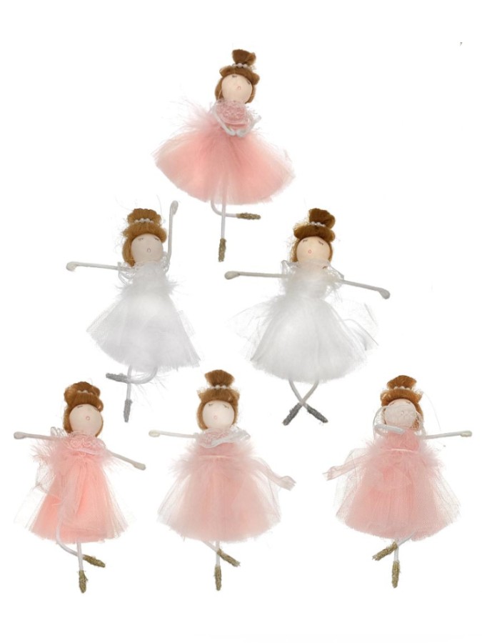 W skład zestawu wchodzi 6 sztuk zawieszek-baletnic - 3 sztuki białe i 3 sztuki różowe.