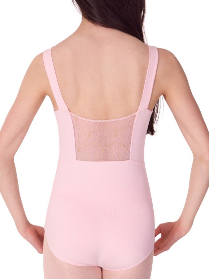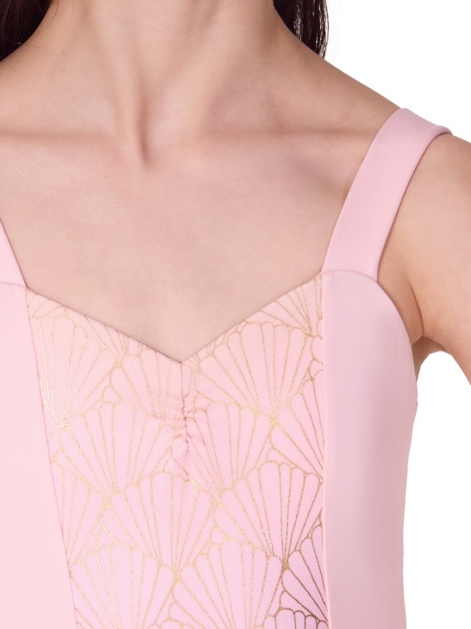 Kostium baletowy na szerokich ramiączkach, który zapewnia stabilność oraz komfort noszenia. Detalami dodającymi uroku jest dekolt w kształcie serca z ozdobnym marszczeniem. Body zostało zaprojektowane tak, aby nie krępować ruchów – idealnie dopasowuje się do ciała i wspiera pełną swobodę ruchu młodej tancerki.