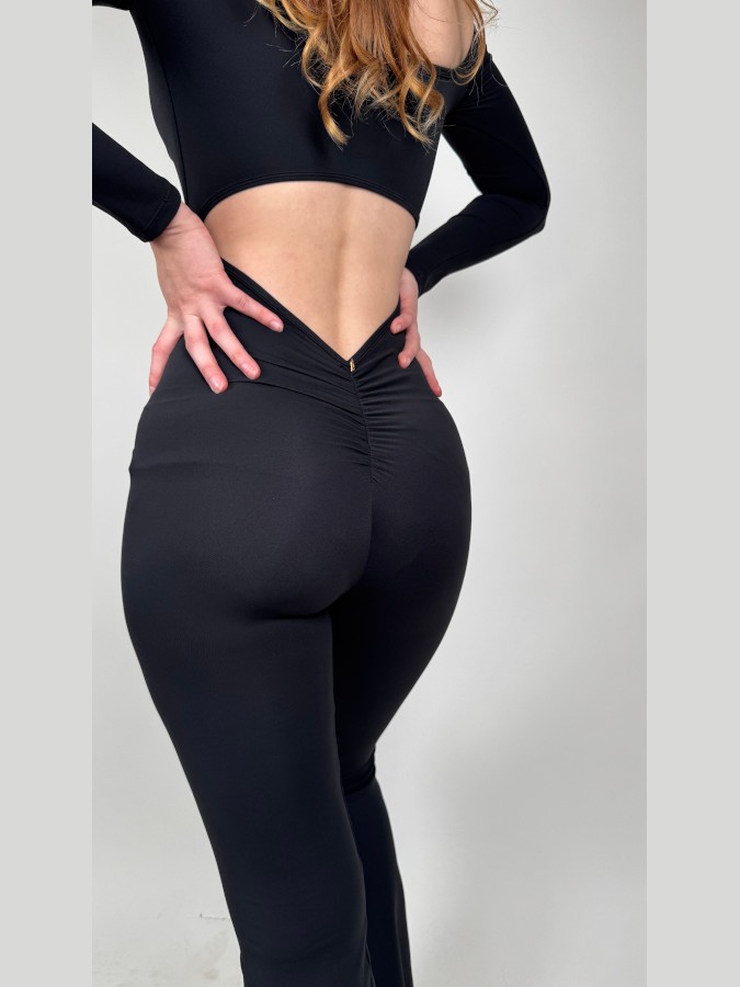 Kombinezon Santiago posiada rozszerzane nogawki, a jeśli interesuje Cię przylegająca nogawka w stylu legginsów, zapraszamy do modelu