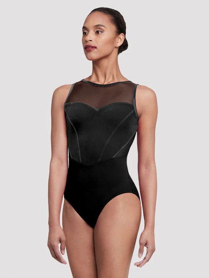 Eleganckie body baletowe Sofia dekoltem sweetheart i z modnymi wstawkami z weluru - niezwykła, modowa propozycja marki Bloch.