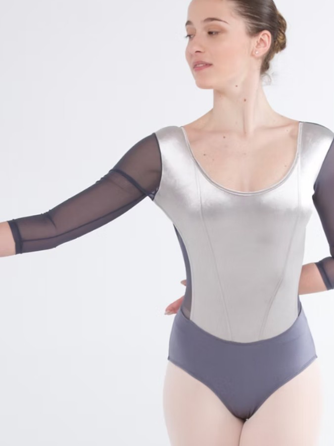 Niezwykle eleganckie body damskie z modnym, welurowym przodem i elementami z siateczki to propozycja marki Pridance dla tancerek podążających za trendami.