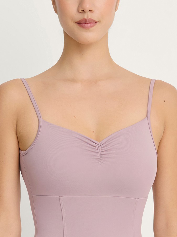 Model Holly posiada cienkie ramiączka i głębokie wycięcie w kształcie litery „U” na plecach pięknie, które pięknie eksponuje łopatki i pracę ramion. Marszczenie na dekolcie dodaje całości uroku i kobiecości oraz sprawia, że body układa się idealnie, niezależnie od dynamiki ruchu.