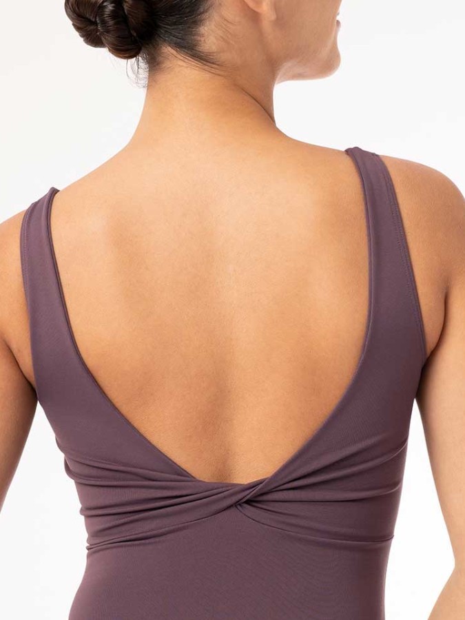 Tył kostiumu posiada dekolt kończący się na wysokości połowy pleców, dzięki czemu ładnie eksponuje postawę tancerki, sprawiając że body jest świetną propozycją na lekcje tańca klasycznego. Plecy kostiumu zostały ozdobione tą samą aplikacją co dekolt, nadając tym spójności oraz oryginalności całemu kostiumowi.