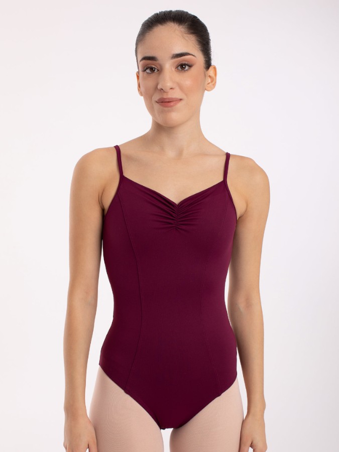 Krój na cienkich ramiączkach, z głęboko wyciętymi plecami oraz dekoltem w kształcie serca to propozycja, która świetnie sprawdzi się na lekcje tańca klasycznego. Krój kostiumu ładnie podkreśla sylwetkę oraz eksponuje postawę tancerki, jednocześnie zapewniając komfort i swobodę ruchu.
