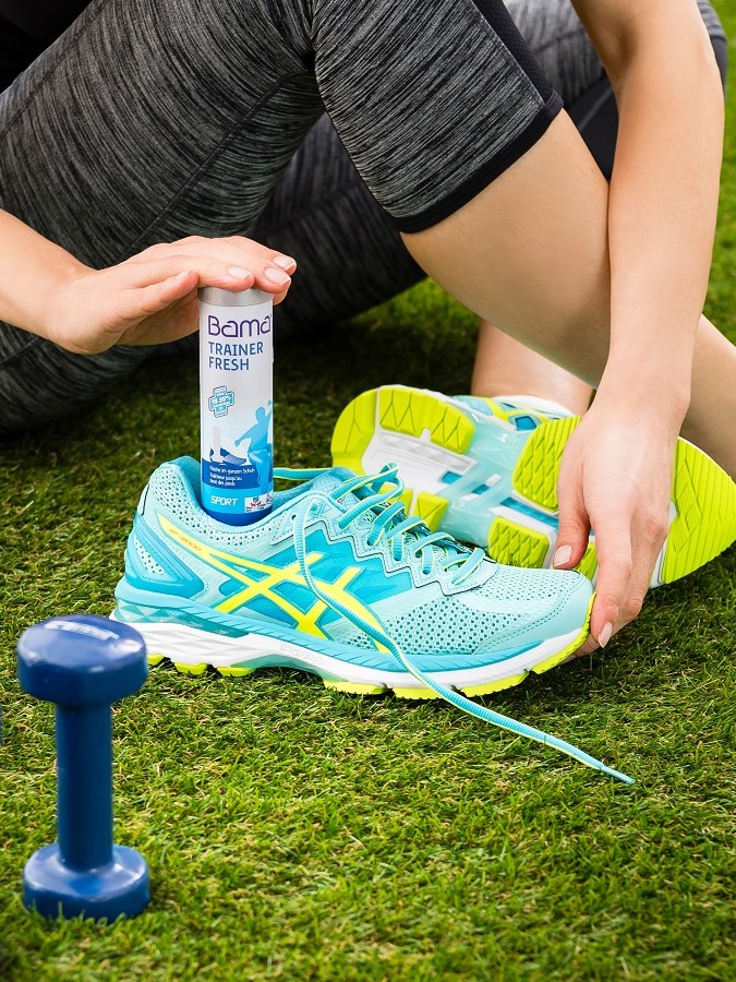 Uniwersalny, innowacyjny, łatwy w użyciu dezodorant do obuwia Trainer Fresh Bama/Kaps w wygodnym do aplikacji opakowaniu.