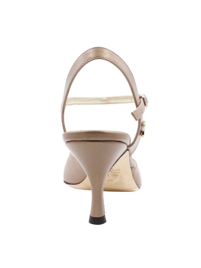 Buty do tanga w odcieniu perłowego brązu idealnie podkreślą Twoją opaleniznę.