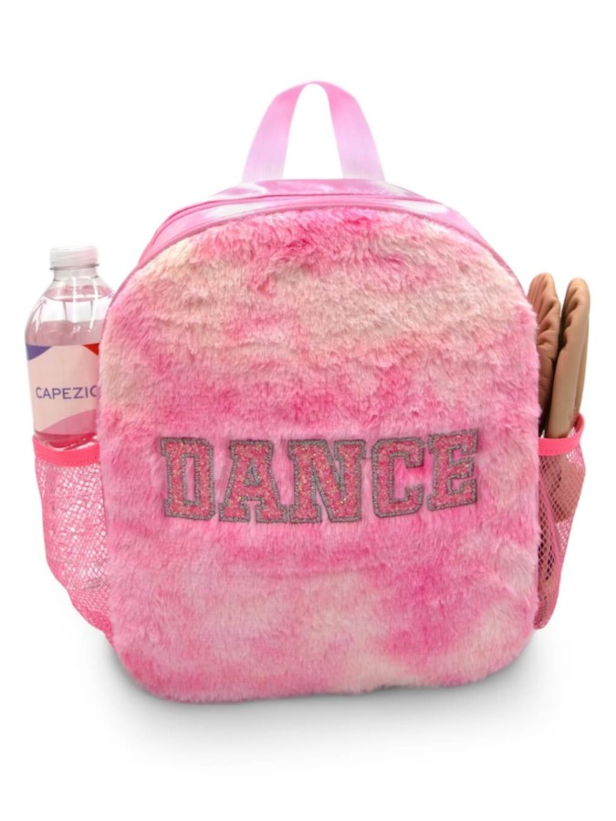 Plecak z futerkiem marki Capezio to idealne połączenie stylu i funkcjonalności. Wykonany z miękkiego, futrzanego materiału, przyciąga wzrok swoim unikalnym designem. Przód plecaka zdobi brokatowy napis "DANCE", dodając odrobinę luksusu do codziennych stylizacji.