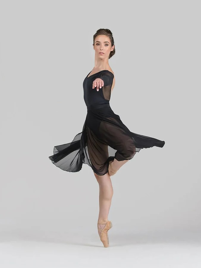 Transparentna struktura materiału dodaje całości elegancji i lekkości, sprawiając, że tunika prezentuje się wyjątkowo kobieco i stylowo, podczas treningu na scenie.