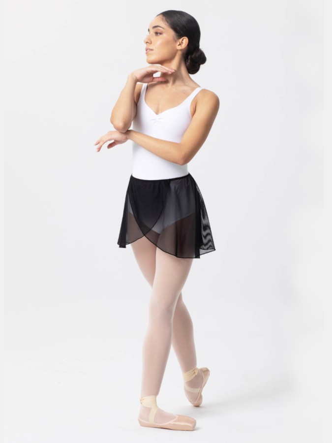 Dyskretna, elastyczna gumka wszyta w pasie zapewnia łatwe zakładanie i wygodne dopasowanie, dzięki czemu spódniczka idealnie sprawdzi się zarówno na treningu, jak i podczas występów, zwłaszcza dla młodszych tancerek.
