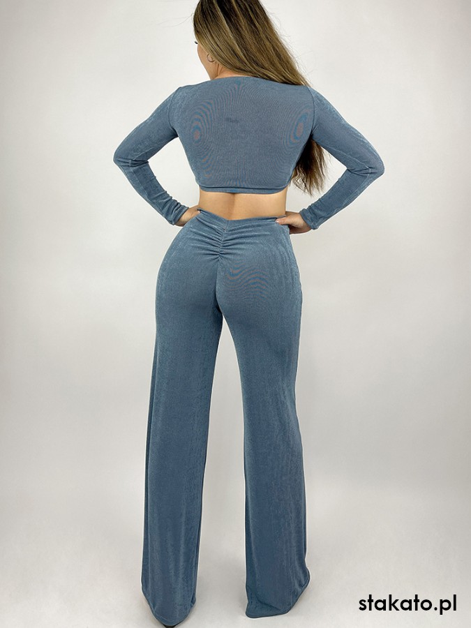 Spodnie wykonane zostały z lejącego, cienkiego materiału, dzięki czemu wyglądają niepowtarzalnie podczas tańca, nadając ruchom dynamiki i lekkości. Szeroka gumka w talii dba o dobre dopasowanie spodni oraz zapobiega ich przemieszczaniu się podczas ruchu. W tylnej części znajduje się ściągacz, który nie tylko jest modnym dodatkiem, ale również podkreśla pośladki.